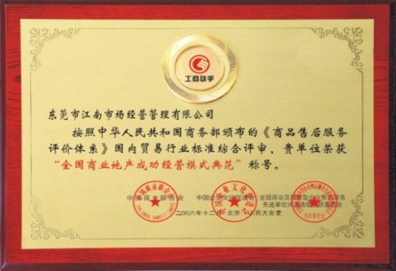 江南农批市场被评定为“中国商业地产成功经营模式典范”