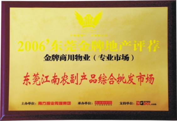 江南农批市场荣获“金牌商业物业(专业市场)”称号